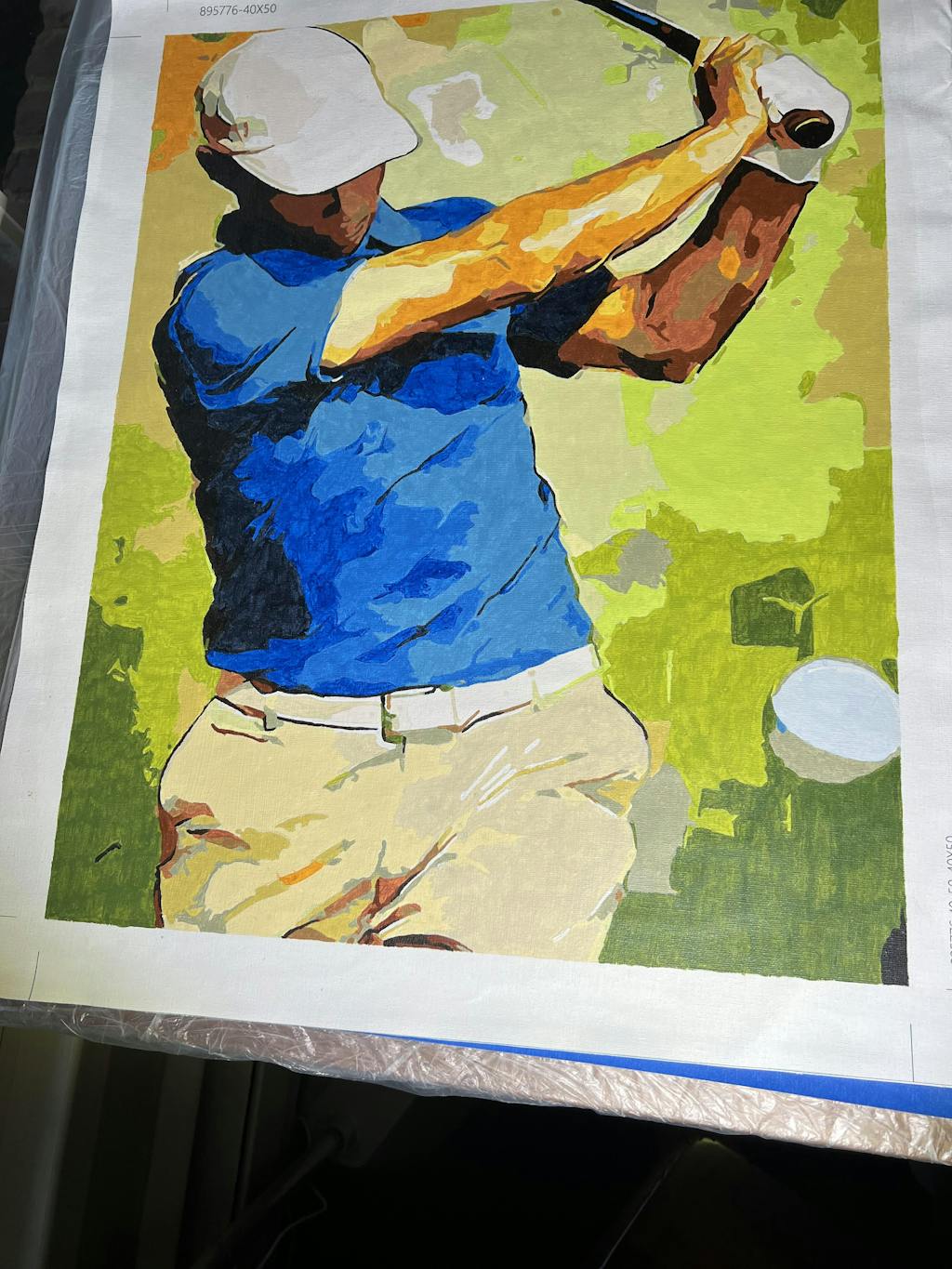 Wie spricht Sie dieses Golf Malen nach Zahlen Set an? Wenn Sie (oder Ihr Ehemann) diesen klassischen und eleganten Sport lieben, dann müssen Sie diese Leinwand sicherlich auch lieben. Der Mann ist in voller Konzentration im Rückschwung vor dem Schlag.