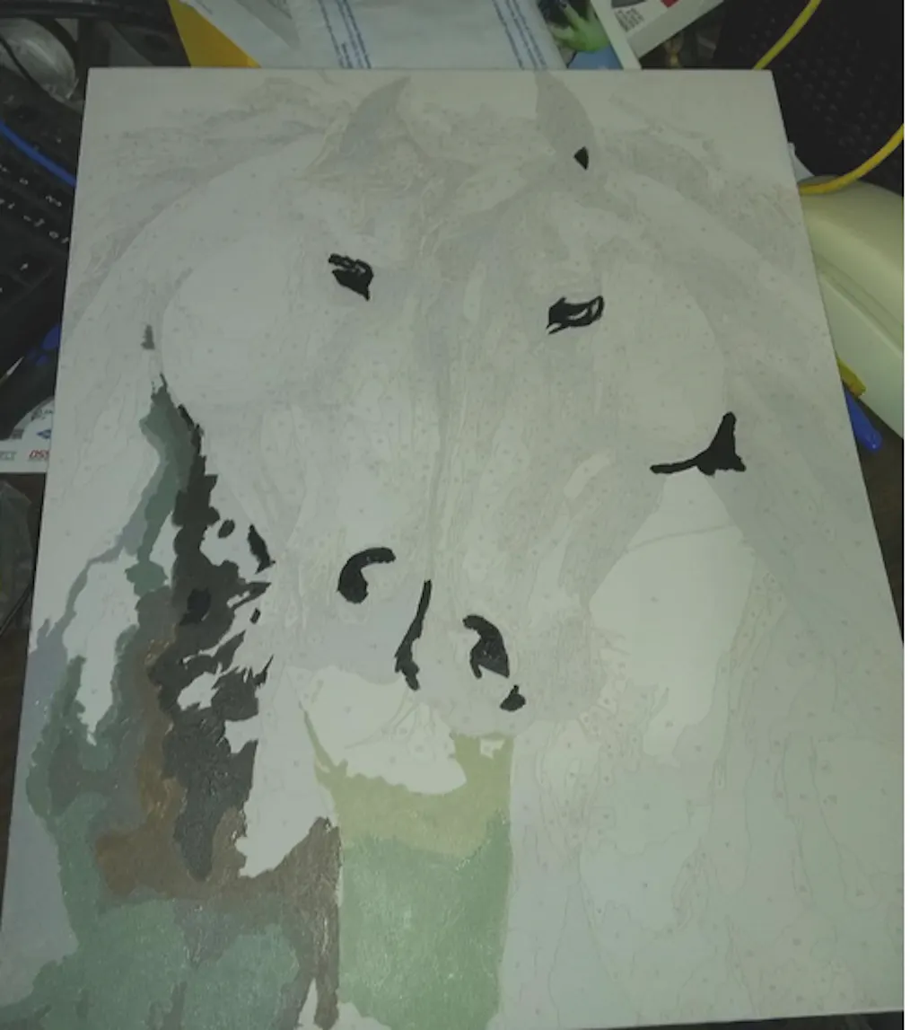 Dieses Pferde-Mal-nach-Zahlen-Set zeigt ein intimes Porträt von zwei Pferden, die sich aneinander schmiegen, dargestellt in warmen und neutralen Aquarelltönen. Das sanfte Vermischen von Braun- und Grautönen fängt die Weichheit und Stärke ihrer Bindung ein. Ihre Augen sind geschlossen, was dem Bild ein friedliches, geerdetes Gefühl verleiht. Ideal als entspannende Aktivität verbindet es die Freude am Malen mit emotionaler Resonanz. Für alle, die sich zu Tieren hingezogen fühlen oder einen ruhigen Moment der Therapie suchen, ist dies die perfekte Wahl. Das fertige Werk fühlt sich wie ein wahres Meisterwerk an, ermöglicht durch dieses Mal-nach-Zahlen-Set.